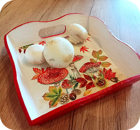Radimo tematski decoupage za različite prigode – karnevalske maske, božićne kuglice, ili “putujući decoupage” gdje ukrašavamo predmete tipične za određenu zemlju (npr. plastične kante za Finsku).