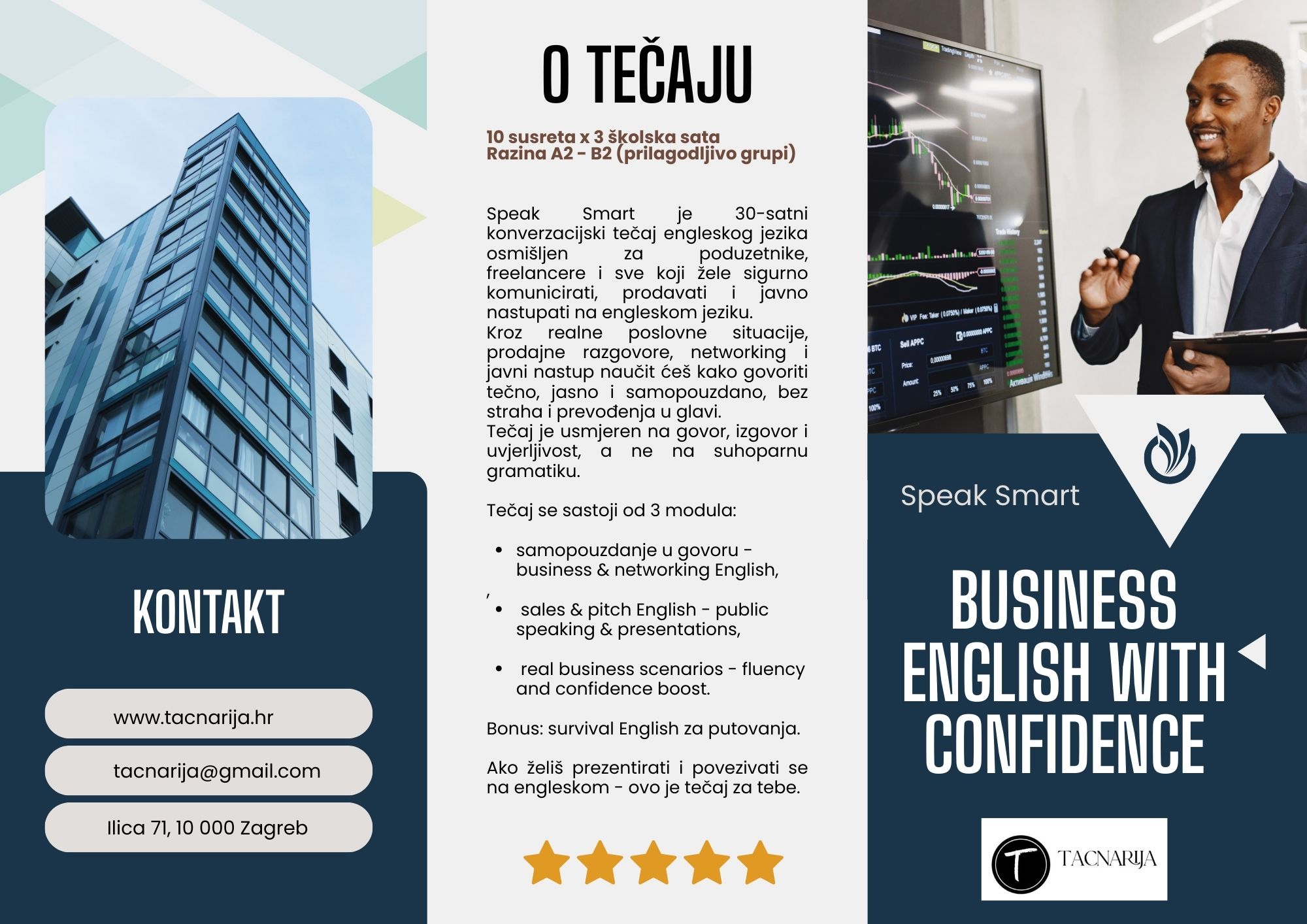 The course focuses on real-life business situations: sales, networking, meetings and public speaking. Through practical exercises and active participation, participants develop fluency, confidence and clarity in their speech, without an emphasis on dry theory.